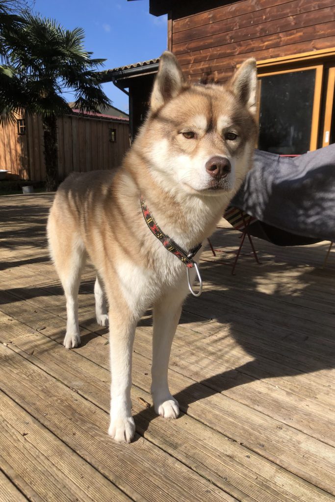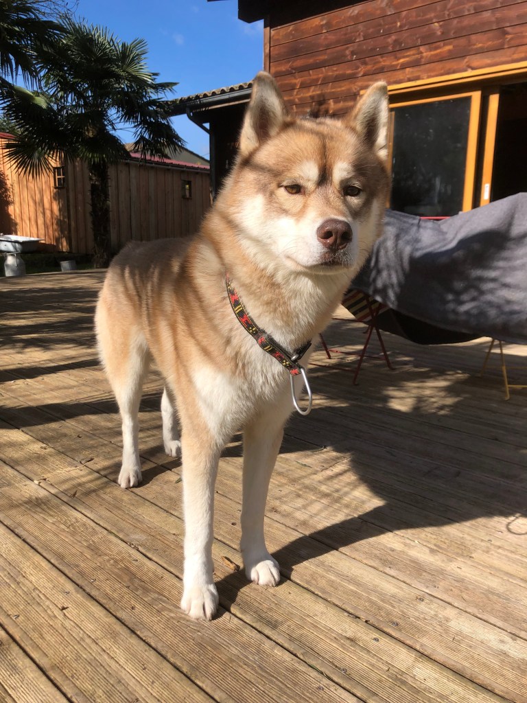 SAIKA la gourmande de la bande et beaucoup d’énergie à revendre, une pile électrique surtout dès qu’elle porte un harnais.